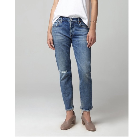 With a mid-rise and just-slouchy. Make me an offer. Citizens of humanity emerson slim boyfriend jean in cadence style 1503-991 EUC - intentional distressing.
